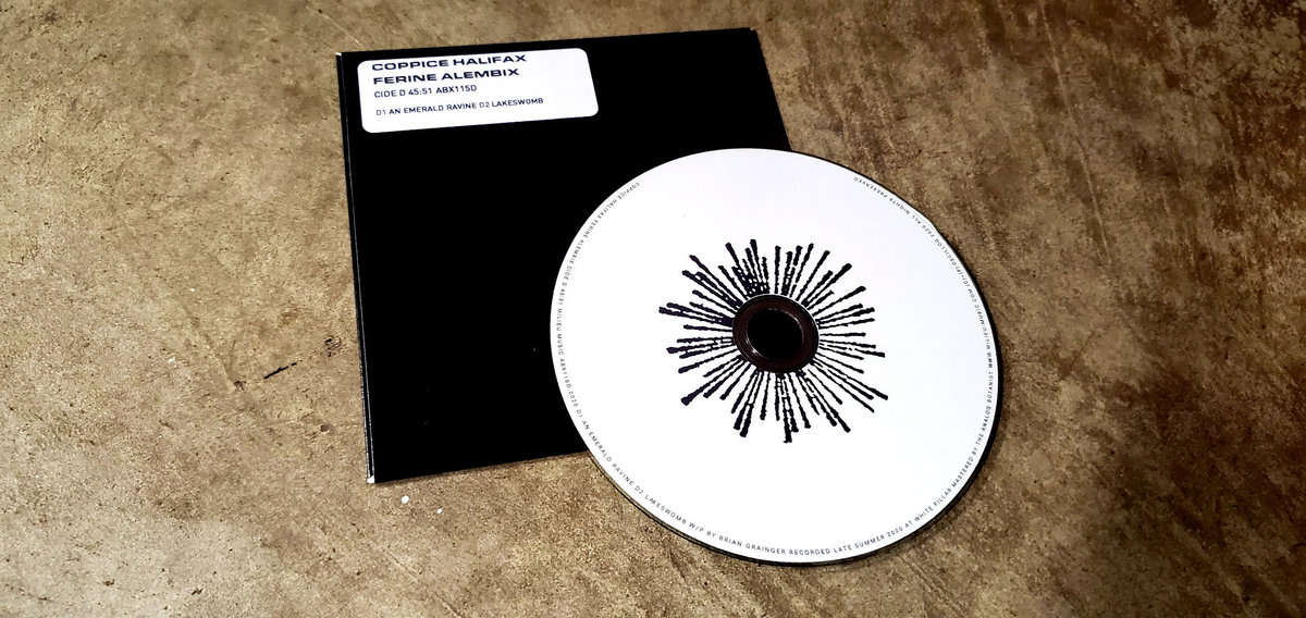 Assembled by hand, one copy at a time, in the White Pillar Workshop. A white 5" compact disc recordable, printed and duplicated via an Imation D20, held securely inside a black die-cut cardstock jacket with a glossy 4x5" photographic print insert and a custom white text label on the back. Ships inside a clear cast-polypropylene sleeve with a flap, to keep your new sonic artifact dust and moisture free.