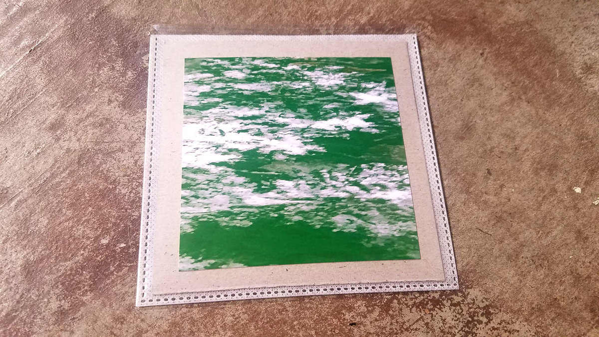 Assembled by hand, one copy at a time, in the White Pillar Workshop! Two white 5" recordable discs, printed and duplicated via an Imation D20 disc duplication machine, held inside a clear plastic cast polypropylene sleeve with a white cloth membrane separating them. The sleeve closes with a flap and contains two hand-cut square chipboard inserts, one bearing a 4x4" glossy photographic print and the other displaying the album's information with a custom text sticker.